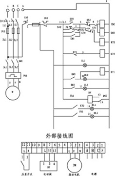 4.控制箱部分引入电源为三相四线制(380V 50HZ),驱动电机功率0.15-3kW,控制箱箱体采用防水全透屏、智能型结构,进出控制箱的接头均为防水接头。接线如电气原理图一(适用于刷式、吸吮扫描式、导流式)电气原理图二(适用于反冲洗式)。