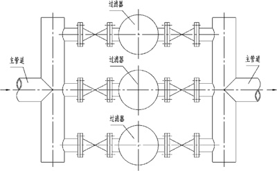 由于管道施工及管理上的不完善,在实际操作中常发现管道系统中进入那些未被清除的大杂物,如钢板边角料头、焊条头、木块、砖、石块以及破布等直接进入过滤器,导致过滤器不能正常工作。为此,用户可在过滤器的入口设置粗过滤器,以滤去管路中的大杂质,保护过滤器的正常运行。(我厂生产的F B系列管道过滤器即可作为前置粗过滤器)