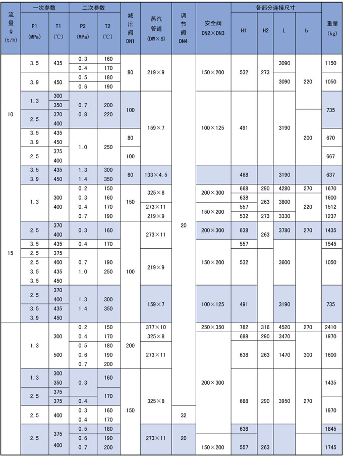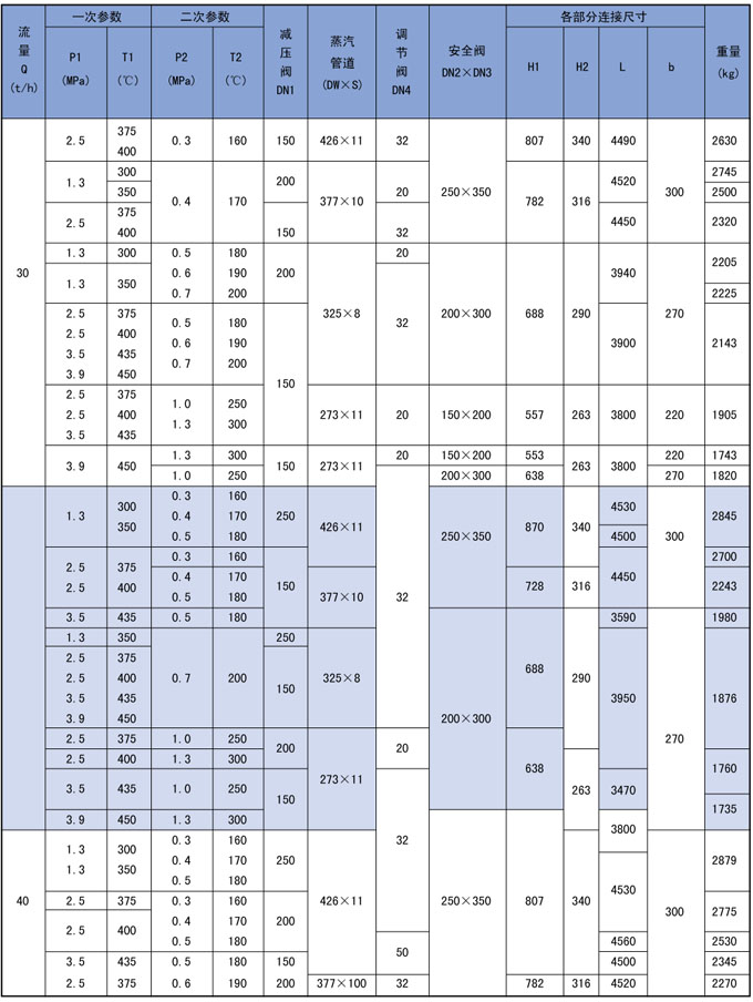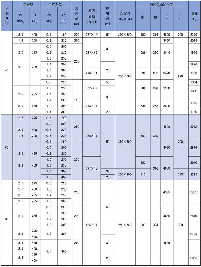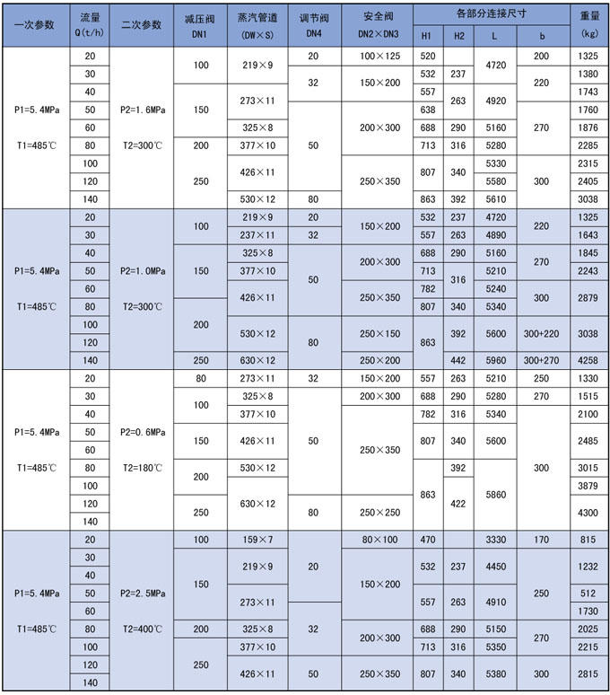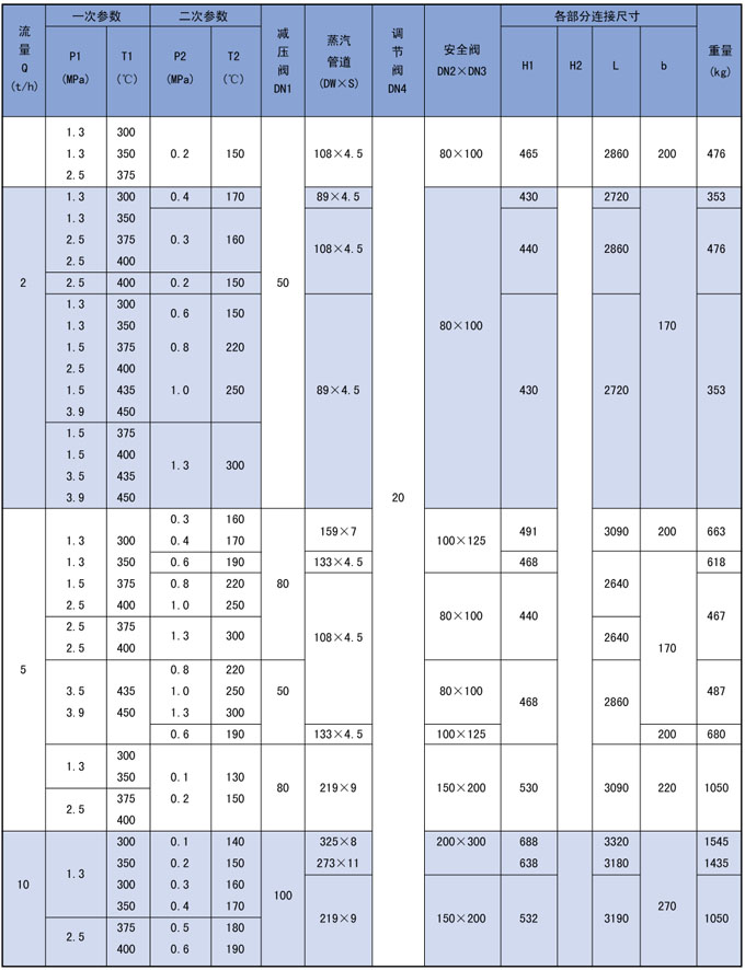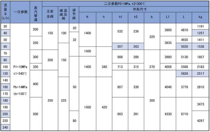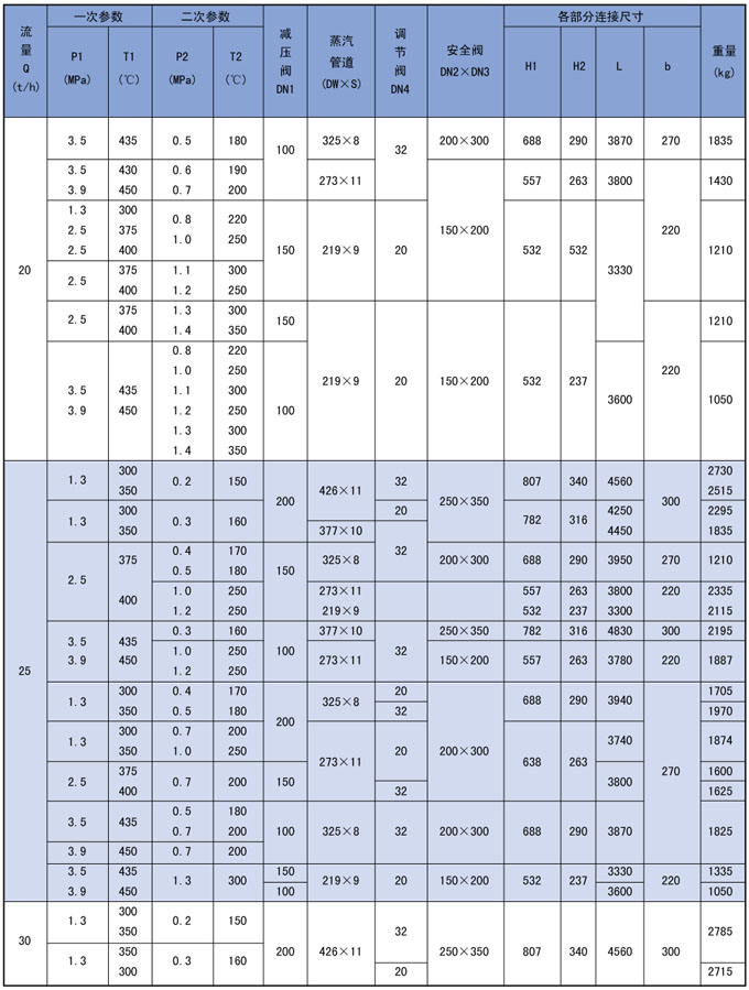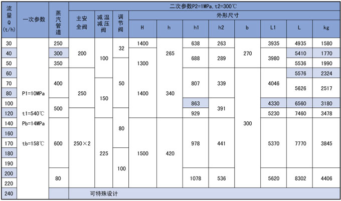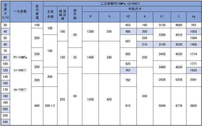 3、高温高压减温减压装置系列表