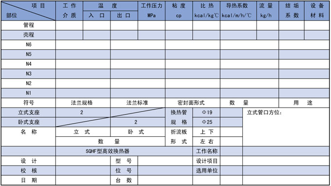 JHF型高效换热器技术参数提交单 |