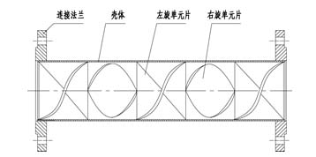 | SK型静态混合器又称单螺旋形静态混合器,它的单元是扭转180度或270度螺旋板,安装入管时相邻的螺旋分别右旋。与SV型静态混合器相比,SK型的混合效果较差,具有明显的放大效应,但是SK型不容易堵塞,适用于较脏的物料。分化过程时能使液漓分散到10um,用于一般的混合过程不均匀度系数a*X-2<5%. |