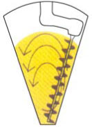 | 最后,物料从螺杆甩下,被带到槽的对面,完成三重混合。 |