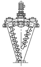 | 混合机筒体内螺旋轴的快速自转将物料向上提升,形成一股沿筒壁自下而上的螺柱形物流,同时,转臂带动螺旋轴作公转运动,使螺旋轴外的物料,不同程度进入螺柱包络线内,一部分物料被错位提升,另一部分物料被抛出螺柱,从而达到全方位物料不断更新与扩散,被提到上部的物料再向中心凹穴汇合,形成一股向下的物料流,补充了底部的空穴,从而形成对流循环,由于上下物料流动的复合,物料在短时间内获得了均匀混合,混合效率高。 |