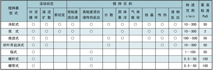 四、搅拌器型式选型表