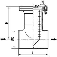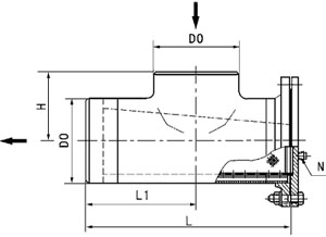| (9)T型异径对焊连接反折流式过滤器SBTⅣD-W(图四型)(DN50×40~300×250, PN≤10.0MPa) |