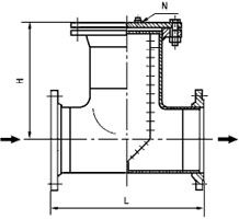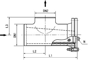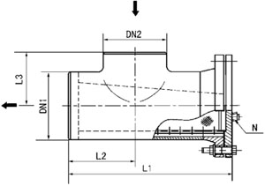 | (8)T型异径对焊连接正折流式过滤器SBTⅣ-W(图三型)(DN50×40~300×250, PN≤10.0MPa) |