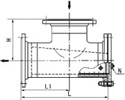 | (7)T型法兰连接反折流式过滤器SBTⅢD-F(图二)(DN50~400,PN≤5.0MPa) |