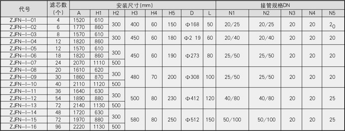 | ★注:滤芯数指折合标准型滤芯(10″长)数目;ZJFN-I-08~ZJFN-I-16平盖为吊臂移动式。 |