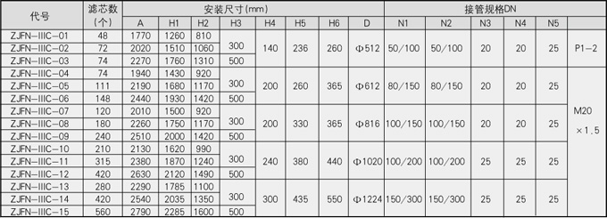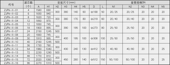 | ★注:滤芯数指折合标准型滤芯(10″长)数目。 |