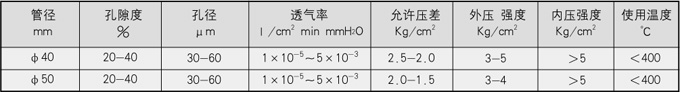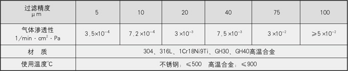 | 四、不锈钢纤维烧结毡主要性能参数表 |
