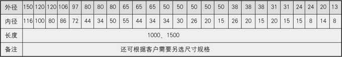 尺寸规格: 内径:φ30mm 外径:φ65mm 长度:250、500、750、1000mm |