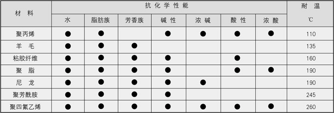 | 利用深层过滤原理工作,针毡布滤袋可滤除大量的固体或凝胶类软性质。100%纯净纤维用针刺方法做成立体三维过滤层面,较大颗粒杂质被滤袋表面捕捉,而微细颗粒则被捕捉于滤材深度中,因而是一种深度性滤材。过滤精度从1-200μ m。针毡布滤袋具有成本低、过滤面积大、压差小的优点,是最经济的过滤方式,针毡布滤袋表面经过特殊处理,确保纤维无脱落,但滤袋不可清洗和再使用。具体见下表。 |
