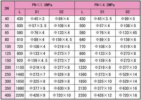 公称直径:DN40-DN300