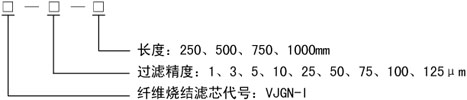 示例:VJGN-Ⅰ-5-1000表示:过滤精度5μm,长度1000mm的纤维烧结滤芯。 |