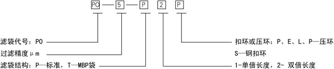 | 示例:PO-5-P2P表示标准型5μm聚丙烯针刺毡滤袋,双倍长度,聚丙烯压环。 |