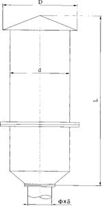 本系列消声器主要用于降低氧气压缩机后放散氧气时产生的动力性噪声。本系列消声器为立式安装。